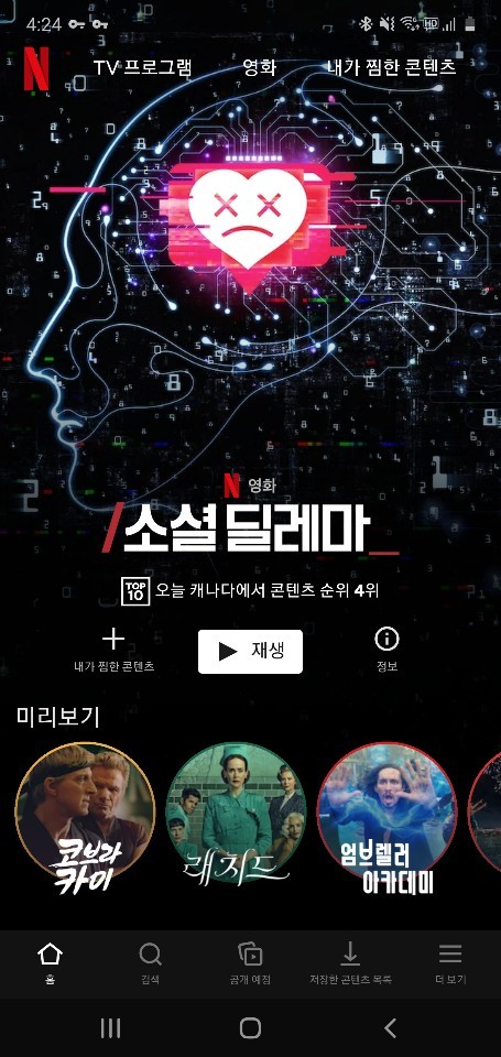 캐나다 넷플릭스에 접속하게 된 모습입니다.
