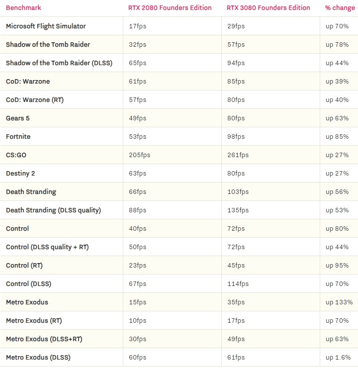 RTX 3080은 동일한 가격인 기존 RTX 2080의